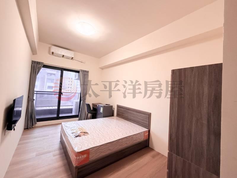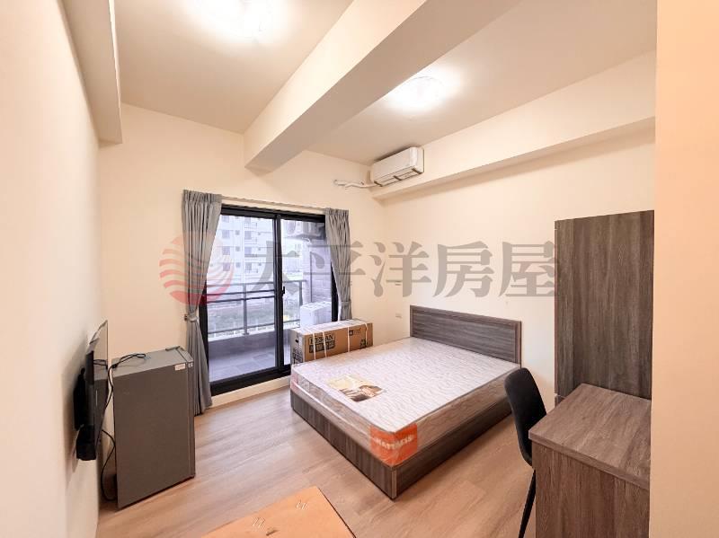 8.含電視、小冰箱、冷氣、電熱水器、洗衣機、標準雙人床墊、床組、書桌、椅子、衣櫃窗簾,立即可出租。