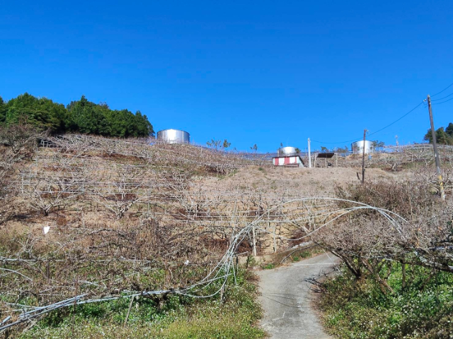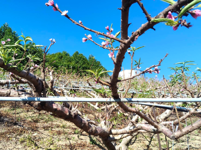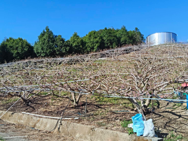 *水果之鄉,現種桃子,有水有電,滿山的桃樹、梨樹、度假小木屋,形成一道風景。