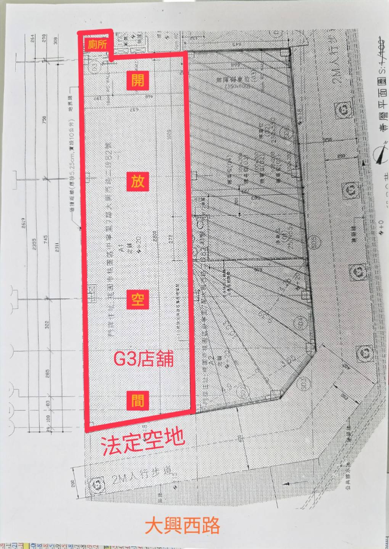 1.藝文特區一樓店面,面寬約6.65米(建物測量成果圖所示) 、一樓挑高約4.2米,使照所示。